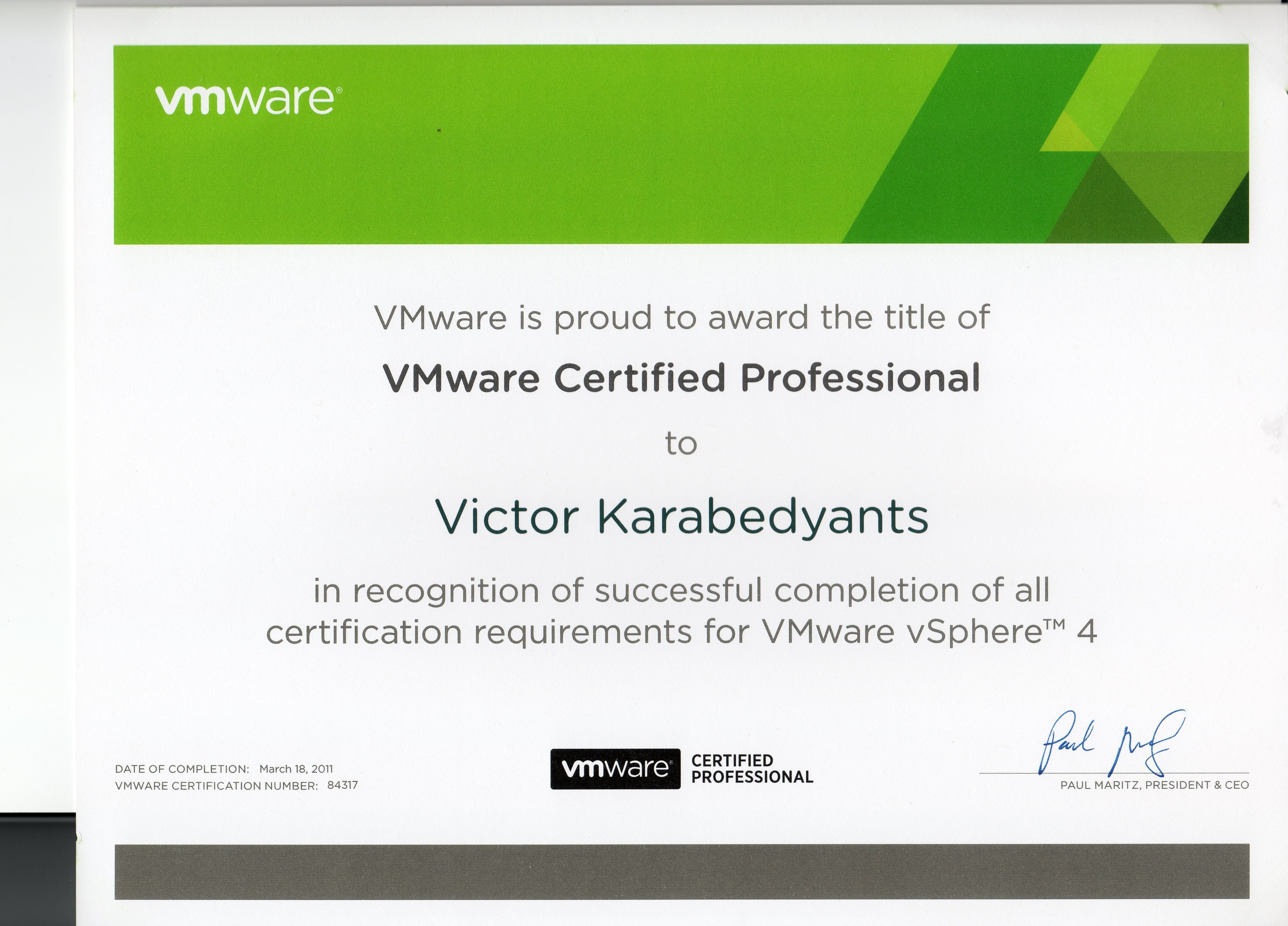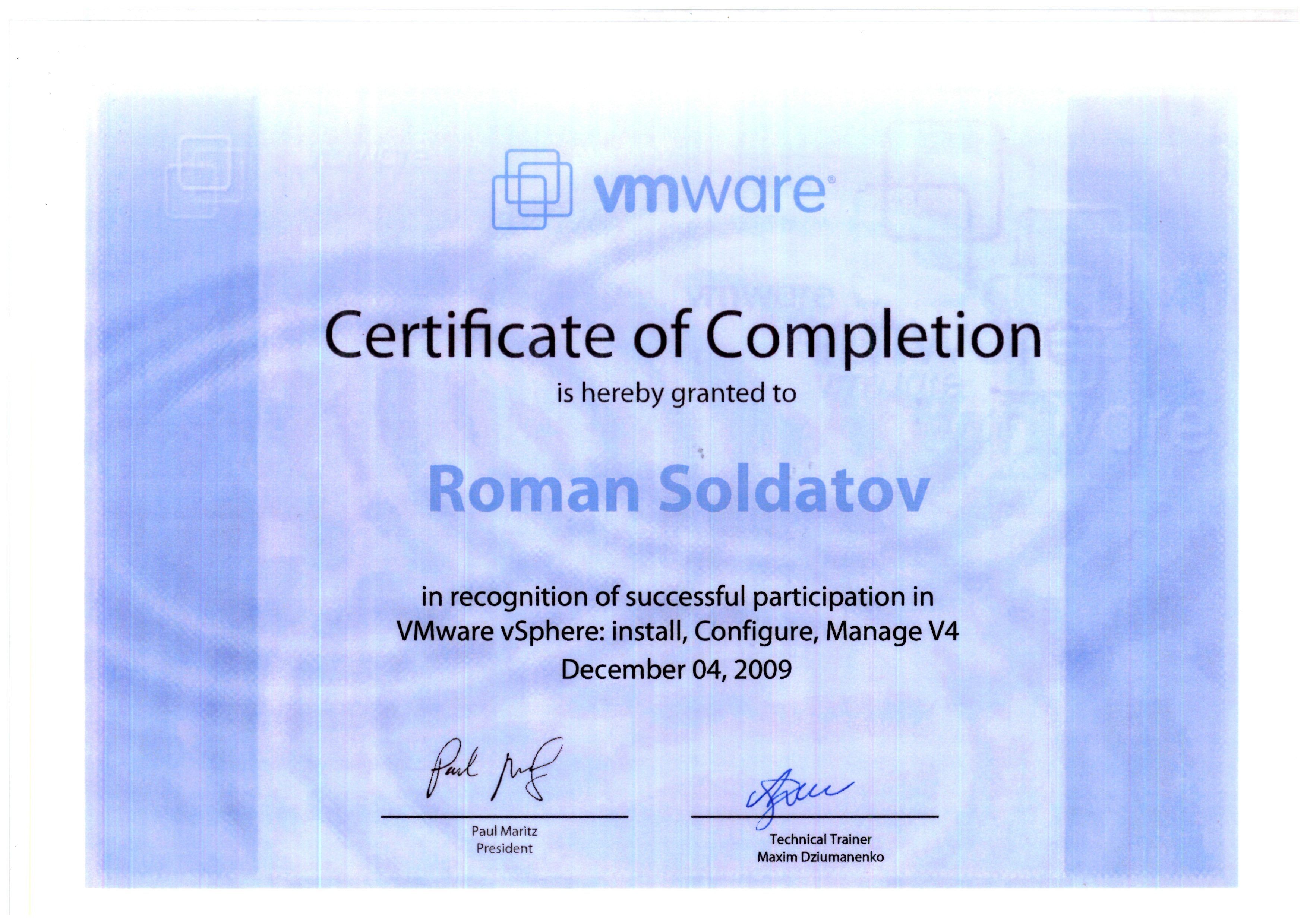 - Экзамен Vmware VCP410. Статус Vmware Certified professional